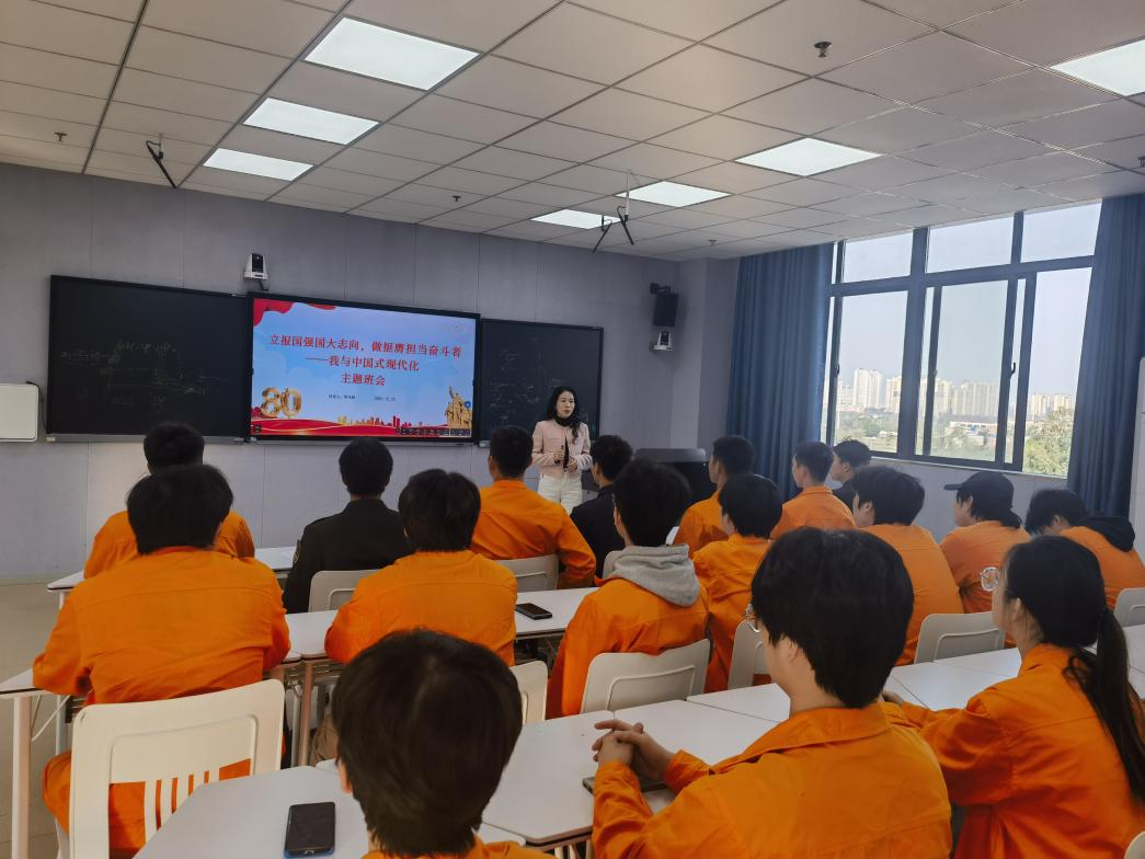 为引导青年学生立牢报国强国鸿鹄志、厚植挺膺担当奋斗魂,电力2428班于12月25日开展“立报国强国大志向,做挺膺担当奋斗者——我与中国式现代化”主题班会。辅导员梁凤婕老师紧扣电力行业特色,带领同学们共学抗战精神,从历史烽火中感悟担当力量,在行业使命中锚定奋进方向,砥砺同学们以青春之我助力电力强国建设。